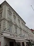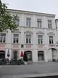 Das Gebäude wird 1367 erstmals erwähnt, der Kern ist auf einen Umbau in der Mitte des 16. Jahrhunderts zurückzuführen. Das heute teilweise durch das Cinema Paradiso genutzte Haus wurde 1757 barockisiert, 1876 wurde die Fassade historistisch gestaltet. 1927 erhielt es sein heutiges Aussehen durch Aufstockung eines dritten Geschoßes. |