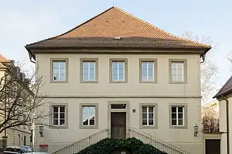 Das Anwesen wurde im Jahr 1791 vom Architekten Johann Philipp Geigel als zweigeschossiger Walmdachbau errichtet und diente zunächst als Pfarrhaus. Im Jahr 1976 wurde es als Nebengebäude des Rathauses umfunktioniert.