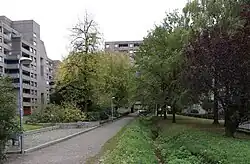 Ein kleineres Gewässer ist der Schwanen-Spiegel im Zentrum des Stadtteiles. Er wird gerne als Treffpunkt von Senioren und Familien genutzt. Durch die Missachtung des Fütterverbots ist die Stadt gezwungen, den Teich jährlich von Algenbewuchs zu befreien, um das ökologische Gleichgewicht zu halten. Die Besonderheit des Schwanen-Spiegels liegt darin, dass er inmitten der öden Betonlandschaft liegt und somit als ein „grüner Farbtupfer im Beton“ bezeichnet werden kann.