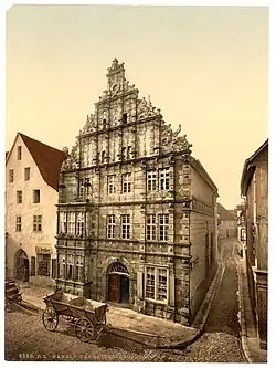 Das Rattenfängerhaus zählt zu den bekanntesten Häusern der Hamelner Altstadt. Es stellt einen der prachtvollsten Bauten der Weserrenaissance dar. Das denkmalgeschützte[1] Gebäude steht an der Abzweigung der Bungelosenstraße von der Osterstraße.