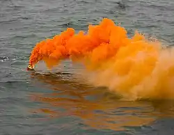 - Rote und orange Rauch- und Nebelsignale, z. B. durch Rauchbojen, dienen in der Schifffahrt als Notsignale.