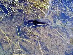 Die Paarungszeit dauert von Dezember bis Juli. Im Wasser umklammert das Männchen das Weibchen von oben mit den Beinen. Auf einem Gallertkegel wird das Sperma am Boden abgesetzt und mit der Kloake vom Weibchen aufgenommen. Der Laich wird auf die Blätter von Wasserpflanzen geheftet.