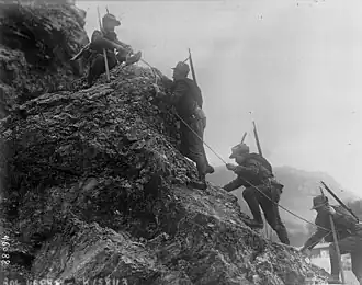 Die Theorie des Raumes ist durch die physisch-geographischen Faktoren, der strategisch operativen und taktischen Ebene für das Militär zu verwenden. Durch diese Informationen wurde der Raum mehr als nur ein Gelände, da die räumliche Ordnung und der Informationsraum in den Fokus rückten. Die Begriffe Schlachtfeld und Kriegstheater, die Nübel in seiner Einleitung Eine Geschichte der Kriegserfahrung 1914-1918 nennt, erläutern sehr gut, in welchem Zusammenhang Krieg und Raum in der Militärgeschichte stehen.[15] So spielt der physisch-geografische Raum eine entscheidende Rolle in Bezug auf die Umwelt. In Zeiten des Krieges stand den Soldaten keine gängige Infrastruktur, die ihnen die Unabhängigkeit von der Natur gewährleistete, zur Verfügung. Daher waren die Soldaten gezwungen ihre Lebenssituation an die Umgebung, in der sie kämpften anzupassen. Sie schliefen in Zelten und verweilten in Schützengräben, wodurch sie den Jahreszeiten, sowie den Wetterveränderungen, wie Regen, Schnee oder extremen Temperaturen unterlegen waren. Damit waren die Soldaten abhängig von der Umwelt. Ebenfalls ist das Gelände, beispielsweise das Schlachtfeld, unter dem physisch-geographischen und unter dem mentalen Raum zu erfassen. Das Gelände beeinflusste die Kampfstrategie des Militärs, da zum Beispiel auf offenen Landschaften wie Feldern einfacher gekämpft werden konnte, als in einer Gebirgsregion. Das Feld war für die Soldaten übersichtlicher und kostete sie zudem weniger körperliche Anstrengungen, als in einer eher unübersichtlichen Gebirgsregion. Außerdem wurden die Soldaten an der Front einer ständigen Gefahr ausgesetzt. Die Anpassung an die Lebensumstände in einem bestimmten Gebiet setzte voraus, dass die Soldaten eine bestimmte Wahrnehmungs- und Vorgehensweise besaßen. Dies sorgte ebenfalls für das Konzipieren des mentalen Raumes. Ein weiterer wichtiger Begriff im Zusammenhang mit Krieg und Raum sind die Landschaften. Allerdings beziehen diese sich nicht auf das militärische Gelände, sondern auf die geschichtlichen Räume, die auf Wahrnehmung, Erinnerung und Erfahrung basieren. So prägten die Landschaften den sozialen und mentalen Raum der Soldaten im Krieg.[16][1]