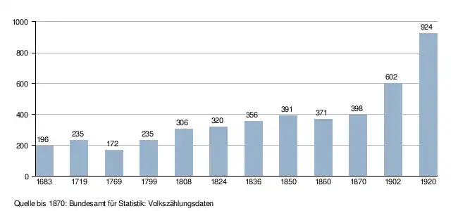 - ↑ Daten der Eidgenössischen Volkszählungen ab 1850 nach Gemeinden. (XLSX; 10 MB) Bundesamt für Statistik, Neuchâtel, 12. Juli 2024, abgerufen am 23. April 2025 (Öffnung in Excel nur über "Anhang/Excel-Datensatz" möglich).