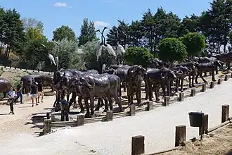 - Büffelherde, Giraffengruppe, Baobab Baum, Afrikanische Krieger. Buddha Eden Garden, Quinta da Bacalhoa, Bombarral, Portugal[11]