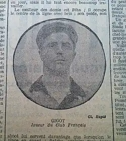 Der Abwehrspieler Gigot trug in den frühen Jahren des 20. Jahrhunderts das Trikot des französischen Hauptstadtvereins Club Français Paris. Er zeigte derart gute Leistungen, dass er kurz vor seinem 20. Geburtstag für eines der ersten Länderspiele in der Geschichte der französischen Nationalmannschaft berücksichtigt wurde. Am 7. Mai 1905 lief er an der Seite seiner Vereinskollegen Fernand Canelle und Georges Garnier für Frankreich auf und musste eine 0:7-Niederlage gegen Belgien hinnehmen. Für weitere Einsätze wurde er nicht berücksichtigt.[2] Im Sommer 1905 wechselte er vom Club Français zum Stadtrivalen Stade Français.[3] Am Ersten Weltkrieg musste er als Soldat teilnehmen und fiel im September 1915 im Alter von 30 Jahren bei einer Offensive der französischen Armee im Artois. Er ist einer von vier Nationalspielern des Landes, die dieses Schicksal erlitten.[4]