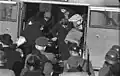 Am Sonntag, dem 24. Januar, um 5 Uhr morgens wurde uns mitgeteilt, dass wir freigelassen würden. Vom 2. Stock, wo ich war, rannte ich los, um Erster zu sein, der herauskommt. Dann sagte zu meiner Rechten ein junger Zivilist: „Drängeln Sie nicht, die Ypsilons (gemeint sind die Nummernschilder der Wehrmachtsfahrzeuge) werden alle töten“. Erschrocken hörte ich auf zu drängeln. Um 5:30 Uhr öffnen sich die Gefängnistüren und was ich sah, ließ mich verstehen, was Ypsilon bedeutete. Ich sah deutsche Soldaten, ich sah vergitterte Gefängniswagen, in die wir hineingesteckt werden. Der Fahrer ist ein Gendarm, und drinnen, bei den hinteren Türen, saßen zwei französische Gendarmen sich gegenüber (ja, das muss man sagen). Der Konvoi setzt sich langsam in Bewegung. Auf jeder Straßenseite ungefähr alle 10/15 Meter, bis zur Gare d`Arenc, wo wir um 6:45 Uhr ankamen, standen Wehrmachtssoldaten mit auf uns gerichteten Bajonetten und ab und zu SS-Offiziere mit „deutschen“ Schäferhunden. Die SS-Offiziere standen so steif da, dass ich vor den Gendarmen sagte: „Sie sind stolz, sie stehen so aufrecht, dass es aussieht, als hätte ihnen jemand einen Besenstiel in den Hintern gesteckt“. Wir kamen am Prado, Castellane, der Rue de Rome, dem Cours Belzunce und der Porte d'Aix vorbei. Als wir im Gefängniswagen durch den Eingang zum Arenc-Bahnhof fuhren, konnte ich links eine Gruppe SOL vor der SS strammstehen sehen, dann lächelnde Zivilisten – zufrieden und stolz auf die geleistete Arbeit sowie GMR und SS-Offiziere immer mit den Hunden. Der Gefängniswagen bewegte sich zu den ersten Waggons an die Spitze des Zuges. Ich gehöre zu den Ersten, die einsteigen, und helfe den anderen mit meiner Hand. Irgendwann sagt der Mann mit der Mütze neben der Tür zu mir: „Lass die Hand, du bist erschöpft!“ Später wird mir dieser Mann erzählen, dass er sechzig Jahre alt ist und aus Miramas kommt. Er wollte seine Enkelkinder in Marseille besuchen und wurde am Bahnhof festgenommen. Nach dieser Szene merkten wir, dass der Wagen voll ist, aber ein Zivilist sagte zu uns: „Hebt eure Arme, um Platz zu schaffen!“, und sie nahmen weiterhin Männer an Bord, bis wir 60 waren. Bevor losgefahren wurde, warfen sie 7 Laibe Brot und 3 oder 4 Dosen Essen in den Waggon. Um 7 Uhr wurde der Wagen von einem Arbeiter, der links von der Tür (auf den Fotos) gebeugt zu sehen ist, mit einer großen Zange verschlossen.
