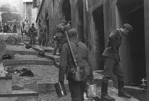 - ↑ Ahlrich Meyer: Die Razzien in Marseille und die Propagandaphotographie der deutschen Wehrmacht. (PDF; 13 MB) In: Francia. Forschungen zur westeuropäischen Geschichte. Deutsches Historisches Institut, Paris, 1995, S. 135, abgerufen am 24. Januar 2024.