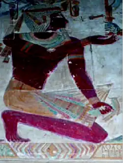 - ↑ Sonderzeichen U 103 gemäß Petra Vomberg: Sonderzeichenliste In: Rainer Hannig: Großes Handwörterbuch Ägyptisch-Deutsch : (2800 - 950 v. Chr.). von Zabern, Mainz 2006, ISBN 3-8053-1771-9, S. 1448.
