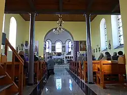 Eine 1652 von den Besitzern von Redel gestiftete Kirche musste 1845 wegen Baufälligkeit abgerissen werden. Redel erhielt 1859 einen Neubau aus behauenen Feldsteinen mit Dachreiter, 1922 kam ein Glockenstuhl für zwei Glocken hinzu. Am 25. August 1946 wurde die seitdem katholische Kirche dem heiligen Johannes dem Täufer geweiht und 1974 eine eigene Parochie Redło gegründet.