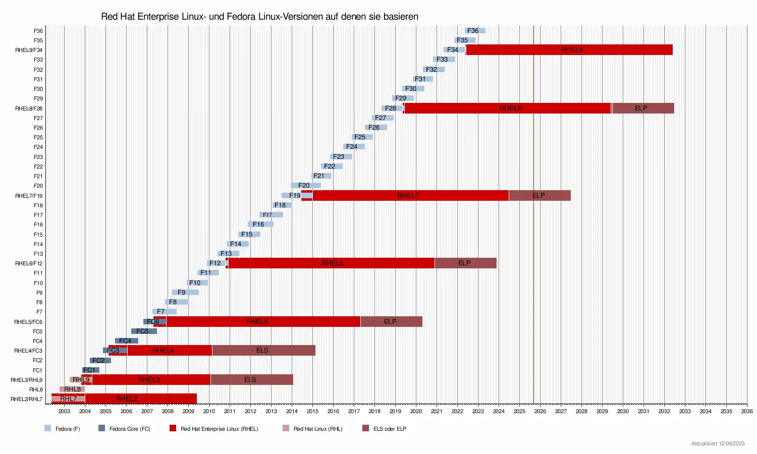 Für mehr Informationen über die Versionsnamen siehe Fedora- und Red-Hat-Versionsnamen