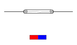 Reedschalter (oder Reedkontakte, historisch auch Herkon[1][2][3][4]) sind im Glasrohr (hermetisch) eingeschmolzene Kontaktzungen aus einer Eisen-Nickellegierung, die durch ein Magnetfeld betätigt werden.
