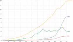 Nach der Kulturrevolution unter Mao Zedong startete der „Überragende Führer“ Deng Xiaoping das Programm Boluan Fanzheng, das die Grundlage für „Reform und Öffnung“ bildete.[4] Im Dezember 1978 wurde Deng der neue oberste Führer Chinas und startete die Reform und Öffnung. In den 1980er Jahren gab es eine Reihe politischer Reformen, die von Deng Xiaoping, Zhao Ziyang und anderen durchgeführt wurden. Die Reformen endeten jedoch 1989 aufgrund des blutigen Massakers an zivilen Demonstranten auf dem Platz des Himmlischen Friedens.[5][6] Nach diesem Tiananmen-Massaker 1989 stagnierten neben den politischen Reformen auch die Wirtschaftsreformen, wurden jedoch nach Deng Xiaopings Südtour im Jahr 1992 wieder aufgenommen.[7][8] Im Jahr 2001 trat China der Welthandelsorganisation (WTO) bei.[9] 2010 überholte China Japan und wurde die zweitgrößte Volkswirtschaft der Welt.[10][11]