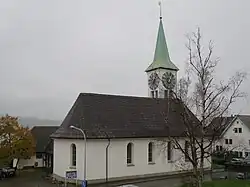 Das Kirchenschiff, ursprünglich eine Saalkirche mit polygonalem Abschluss, ist seit dem Umbau von 1972 durch den Architekten Paul Hintermann ostseits um ein zusätzliches Schiff mit Pultdach und symmetriehalber nordseits um einen weiteren Polygonalabschluss erweitert. Die älteren Gebäudeteile enthalten Rundbogenfenster, während der südliche Anbau von einer modernen Fensterflucht geprägt ist. Der Turm von 1928 verfügt über Zifferblätter und einen geknickten Spitzturmhelm.