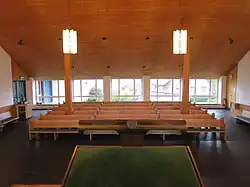 Der Zugang zum Kirchenraum erfolgt über einen Anbau von 1972 im Nordosten der Kirche. Hier befinden sich ein kleiner Saal und ein Foyer, an dessen Wand ein von ortsansässigen Frauen gestickter allegorischer Wandteppich hängt.