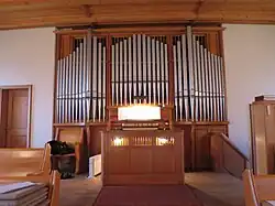 Auf der 1952 erneuerten Empore befindet sich die Orgel, ein Werk von Orgelbau Kuhn aus dem Jahr 1928. Das pneumatische Instrument verfügt über zwei Manuale und Pedal mit insgesamt 17 klingenden Registern.[1] Die Empore ist über eine Treppe im Vorraum der Kirche zu erreichen.