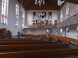 1962–1963 wurde der Innenraum stark purifiziert und zur Querkirche umgestaltet. Dabei wurde die Liturgiezone mit Kanzel und Abendmahlstisch auf die westliche Längsseite der Kirche versetzt, während die übrigen vier Seiten durch eine hufeisenförmige Empore dominiert werden, die auf unverzierten Säulen ruht. Auf der Nordseite, also am alten Standort, wurde 1963 eine neue Orgel durch die Firma Metzler Orgelbau eingebaut. Die Kirche ist mit abstrakten Farbglasfenstern von Franz Karl Opitz verziert. Die Fenster der Westseite von 1965 stammen von Franz Karl Opitz sind von biblischen Symbolen und Szenenbildern mit Bezug auf die Gleichnisse Christi geprägt. 1997 schuf Opitz weitere Farbglasfenster für die Fenster der Ostseite unter dem Titel Durchdringung. Diese Fenster werden von dynamischen Farbbändern in schwarz, gelb, rot, grün und blau geprägt, die unter anderem für die paulinischen Grundwerte des Christentums – Glaube, Liebe und Hoffnung – stehen (1 Kor 13,13 ). Von den ursprünglichen, neugotischen Farbglasfenstern ist nur noch eines im Treppenhaus zur Empore erhalten.