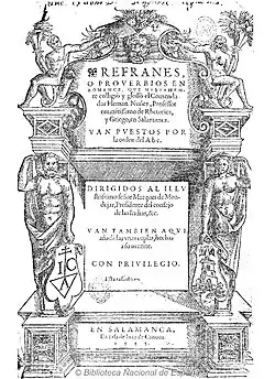 - ↑ Mit vollständigerem Titel: Refranes, O Proverbios En Romance, Qve Nvevamente colligiò y glossò el Comendador Hernan Nuñez, Professor eminẽtissimo de Rhetorica, y Griego, en Salamanca. Van Pvestos Por la orden del Abc [etc.]