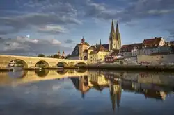 Die Stadt Regensburg hat römische Wurzeln, nach ca. 175 wurde im östlichen Bereich des heutigen Stadtgebiets das Legionslager Castra Regina errichtet, geschützt von einer weit nach Westen ausgreifenden Schutzmauer mit drei Toren, mit Wasser versorgt vom Vitusbach. Im Mittelalter wurde Regensburg Reichsstadt. Nach dem Dreißigjährigen Krieg wurde die Stadt bis 1806 zum Sitz des Immerwährenden Reichstags des Heiligen Römischen Reichs gemacht.