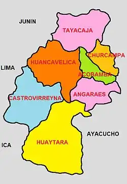 Die Region Huancavelica ist unterteilt in sieben Provinzen und 94 Distrikte.