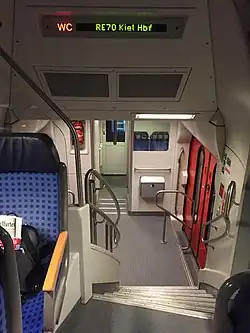 | 297 km | RE 4[Tab 7] | Lübeck – Bad Kleinen – Bützow – Güstrow – Neubrandenburg – Pasewalk – Ueckermünde/Stettin | 4:45 | 6 | DB Regio BR 648 |