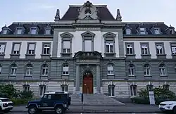 Die Aussenstelle Moutier des Regionalgerichts Berner Jura-Seeland befindet sich in einem 1931 bis 1932 erbauten Gebäude an der Rue du Château. Das Gebäude wurde als Regierungsstatthalteramt erbaut und später zu einem Gerichtsgebäude umgenutzt.[3] Der Bau mit einem Krüppelwalmdach nimmt traditionelle Formen auf und ist mit historistischen Anspielungen versehen, darunter etwa mit Fialen besetzten Stempeln und Strebepfeilern aus Quadersteinen.[3] An der Südfassade illustriert ein Wandgemälde von Armand Schwarz den Burgrechtsvertrag von 1486 mit der Stadt Bern.[3]