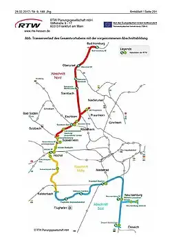 - ↑ a b Günter Murr: Probleme auf Teilabschnitt: Neue Pläne für die Regionaltangente West. In: Höchster Kreisblatt, Frankfurter Neue Presse. 30. November 2017, abgerufen am 10. März 2018.