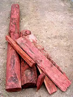 Geborgene Ausbauhölzer aus dem Urbanus Erbstollen, sogar eine „Stollenlaus“ (Holzkeil) war dabei