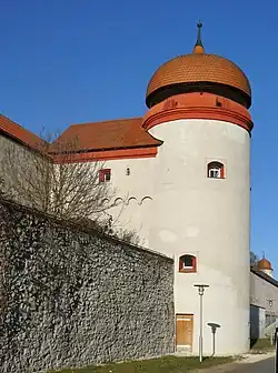Der Reißturm, der als Teil der Stadtbefestigung erbaut wurde, ist ein dreigeschossiger Rundturm mit Geschützbrüstung und welscher Haube. Die Bezeichnung Rüßen Turm wird bereits 1430 erwähnt, sie geht auf den Maurer und Steinmetzen Hans Reiß zurück, der 1408 die Vorgängeranlage überwölbte.
