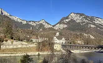 Die heutige Emserbrücke über den vereinigten Rhein stammt von 1881. Die Eisenfachwerkbrücke ersetzte die 1814 bis 1881 bestehende Holzbrücke von Johann Stiefenhofer. Von 1757 bis 1799 stand dort eine der für ihre Zeit am weitesten gespannten Holzbrücken von Johannes und Hans-Ulrich Grubenmann.[3]