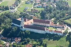 Augustiner-Chorherren-Stift Reichersberg: Dietburga und Wernher von Reichersberg ließen die Anlage errichten. Im 11. Jahrhundert, nach dem tödlichen Unfall des einzigen Sohnes, wandelte der Adelige Wernher von Reichersberg seinen Besitz in ein Kloster um. Seither befindet sich seine Stiftung im Besitz der Augustiner Chorherrn. Nach einem Großbrand im 17. Jahrhundert erhielten die Stiftsgebäude ihre heutige barocke Gestalt. Von 1940 bis 1945, in der NS-Zeit, wurde im Stift eine Fliegerschule eingerichtet, das Stift wurde aber nicht aufgelöst. Bei einem Endphaseverbrechen wurden am 2. Mai 1945 der Augustiner-Chorherr Rupert Haginger und die Stiftswirtschafterin Theresia Lauß von zwei Volkssturmmännern erschossen.[4]