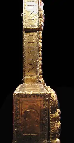 - ↑ Angaben des Kunsthistorischen Museums Wien, Weltliche Schatzkammer, Internetquelle: https://www.khm.at/objektdb/detail/100446/, Stand: 18. Januar 2025.
