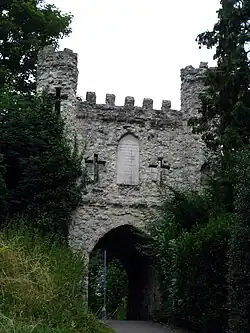 1777 wurde ein nachgemachtes, mittelalterliches Tor über den Ruinen der ursprünglichen Burg errichtet. Eine Inschrift auf der Seite des Tores, auf der einen Seite in Latein und auf der anderen in Englisch, lautet: