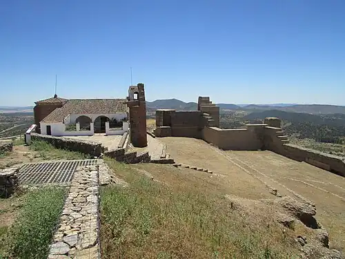 - Bedeutendste Sehenswürdigkeit des Ortes ist die auf dem benachbarten Berg in einer Höhe von 825 m gelegene Festungsruine. Innerhalb eines Mauerrings mit 15 Türmen befinden sich zwei Zisternen (aljibes) – eine aus islamischer, die andere aus christlicher Zeit. In der Außenmauer eines der Türme sind mehrere größere Granitsteine zu sehen, was als Hinweis auf eine antike Nutzung des Platzes verstanden werden kann. Mehrere Teilabschnitte des Mauerrings sind durch Verputz vor weiterer Verwitterung geschützt worden.