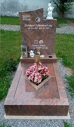 Am 9. Februar 2022 starb Reinhard Schwabenitzky im Alter von 74 Jahren nach langer Krankheit.[1] Die Beisetzung fand auf dem Friedhof der Filialkirche Irrsdorf bei Straßwalchen statt.[4]