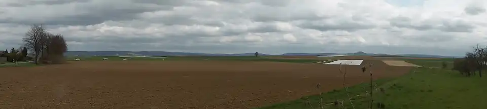 Basaltkuppe des Forstberges, davor Groß-Bieberau -