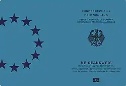- Die Muster der deutschen Reiseausweise für Staatenlose sind in der Anlage D8a (regulärer Reiseausweis) bzw. Anlage D8b (vorläufiger Reiseausweis) zur Aufenthaltsverordnung festgelegt; vgl. auch § 58 Nr. 8 AufenthV.