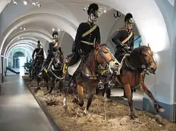 Bereits sehr früh (schon 1797) führte auch Schweden reitende Artillerie ein (zwei Batterien).[78] 1914 bestand eine Reitende Abteilung zu drei Batterien für eine im Kriegsfall aufzustellende Kavallerie-Division[79].