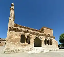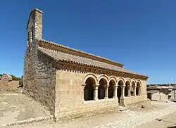 - Die größtenteils aus Bruchsteinen errichtete romanische Kirche der San Martín hat eine weitgehend aus exakt bearbeiteten Hausteinen durch sieben Arkaden geöffnete Südvorhalle (galería porticada); dahinter befindet sich das leicht aus der Wandflucht hervortretende und oben mit einem Konsolenfries abschließende Archivoltenportal der einschiffigen Kirche – ein Glanzstück mittelalterlicher Steinmetzkunst mit einer ungeheuren ornamentalen Vielfalt (Rosettenfries, Perlstab, Flechtband, Kugelstab und Klötzchenfries). Die Westfassade ist dagegen schmucklos und wird nur von einem kleinen Glockengiebel (espadaña) überhöht. Unterhalb der Dachtraufen von Apsis und Vorhalle verlaufen zwei schmucklose Konsolenfriese. Das einschiffige Innere der Kirche enthält Freskenreste mit Szenen aus dem Leben der hl. Martin. Die nahezu ungegliederte Apsis enthält lediglich ein schmales Ostfenster mit zwei eingestellten Säulchen mit Kapitellen und einem ornamental (Perlstab und Kugelstab) dekorierten Rundbogen.