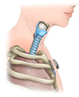 - ↑ a b A. H. Mueller: Laryngeal pacing for bilateral vocal fold immobility. In: Curr Opin Otolaryngol Head Neck Surg. 2011 Dec;19(6), S. 439–443.