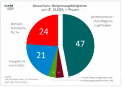 - ↑ Religionszugehörigkeiten 2024, Recherche der Forschungsgruppe Weltanschauungen in Deutschland - FoWiD, abgerufen am 3. April 2025.