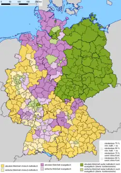 - ↑ Die drei Stadtstaaten im Norden (Hamburg, Bremen und Berlin) sind, ebenso wie die Bundesländer im Osten, mittlerweile mehrheitlich konfessionslos