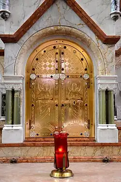 In den orthodoxen Kirchen[1] werden die übriggebliebenen Mahlgestalten nach der Göttlichen Liturgie vom Priester und dem Diakon verzehrt. Auf dem Altar verbleibt jedoch ein Brotgefäß (Artophorion), meist aus Edelmetall und in der Form eines Kirchenzentralbaus,[2] mit Teilen des eucharistischen Brotes für die Krankenkommunion und die Liturgie der vorgeweihten Gaben.