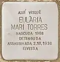HIER LEBTE EULÀRIA MARÍ TORRES GEBOREN 1908 VERHAFTET ERMORDET 2.10.1936 EIVISSA/IBIZA |