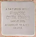 IN SANT JORDI LEBTE FRANCESC COSTA TORRES GEBOREN 1908 ERMORDET 17.2.1937 EIVISSA/IBIZA |