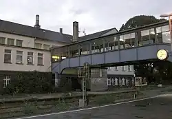 Das nach der Kriegszerstörung in vereinfachter Form auf den noch verbliebenen Grundmauern wieder aufgebaute und am 14. August 1956 erneut eingeweihte Empfangsgebäude[1] war mehrere Jahre lang Gegenstand heftiger Diskussionen. Da seitens der Bahn nur die nötigsten Arbeiten durchgeführt wurden, verschlechterte sich dessen Zustand immer weiter. Im Rahmen der „Regionale 2006“ wurde daher im Zuge der Sanierung der Bahnhöfe und der Bahnstrecke ein kompletter Neubau des Bahnhofs beschlossen. Im Zeitraum zwischen Dezember 2006 und Februar 2007 wurde das alte Bahnhofsgebäude abgerissen. Um die alte Fußgängerüberführung zu ersetzen, wurde bereits im November 2006 durch das THW eine Behelfsbrücke aufgebaut, die bis zur Fertigstellung des Neubaus in Betrieb war. Das geplante Schaufenster der Wirtschaft wurde mangels Investoren nicht gebaut, stattdessen wurden Grün- und Freizeitanlagen angelegt.