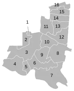 Am 29. Januar 2018 und 30. April 2018 erfolgte eine Verwaltungsreform und die Zahl der Ortsteile (里, Lǐ) wurde von bisher 18 auf 16 verringert.[4][5]