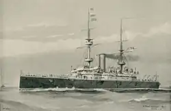 Die Hauptbewaffnung bestand aus vier 254-mm-Geschützen in Barbetten vor und hinter den Aufbauten. Die Sekundärbewaffnung bestand aus zehn 152-mm-Schnellfeuergeschützen, von denen jeweils drei an jeder Breitseite in Kasematten und die restlichen vier in den Aufbauten ebenfalls in Kasematten montiert waren. Zur Abwehr gegen Torpedoboote waren zwölf 76-mm-Schnellfeuergeschütze installiert. Außerdem war das Schiff mit fünf Torpedorohren ausgestattet, eines im Heck über Wasser und zwei auf jeder Breitseite unter Wasser.[1]