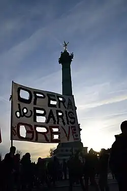 Umfragen zufolge lehnen 70 % der Franzosen und über 90 % der französischen Arbeitnehmer die Reform ab.[16] Die beiden großen Gewerkschaften Frankreichs mit politischer Ausrichtung, die Confédération française démocratique du travail (CFDT) und die Confédération générale du travail (CGT) riefen zu Aktionstagen und politischen Streiks auf. Etliche weitere Verbände und kleinere Gewerkschaften schlossen sich an. Das Recht auf Streik ist in der französischen Verfassung verankert und nimmt Beamte nicht aus; so legten etliche Lehrer und Universitätspersonal aus Protest zeitweise die Arbeit nieder.[17]