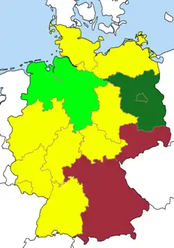 Wie groß ihr Aufenthaltsbereich ist, ist in den Bundesländern unterschiedlich geregelt. Der Aufenthaltsbereich kann auf den Bezirk, den Kreis oder das Bundesland beschränkt sein, in dem der Asylbewerber wohnen muss. Er kann auch aus mehreren Bezirken oder Bundesländern bestehen.[8] Asylbewerber und Geduldete, die in Berlin oder Brandenburg wohnen müssen, können sich in beiden Bundesländern frei bewegen. Entsprechendes gilt für Asylbewerber in Bremen und Niedersachsen.